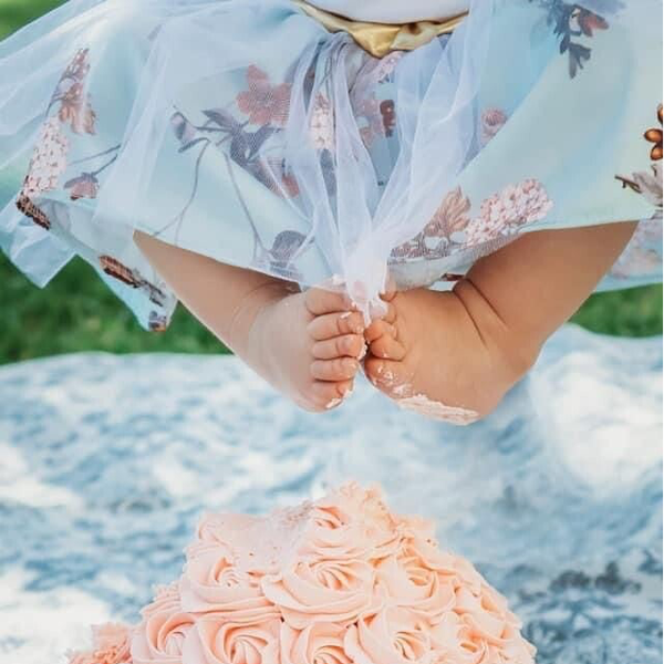 This beautiful tutu has soft pastel hues, delicate silk floral pattern with a layer of tulle.