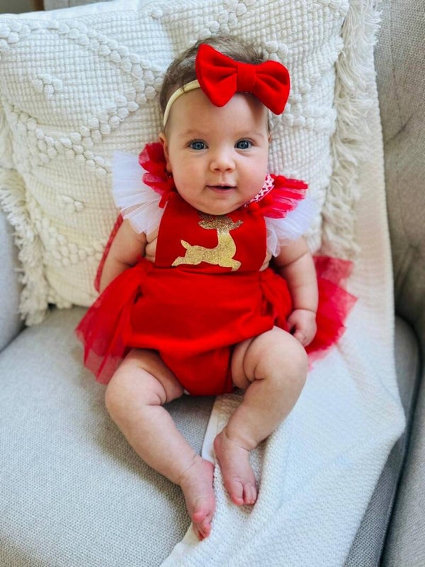 Dress your little one in holiday cheer with our soft red velvet Christmas romper!