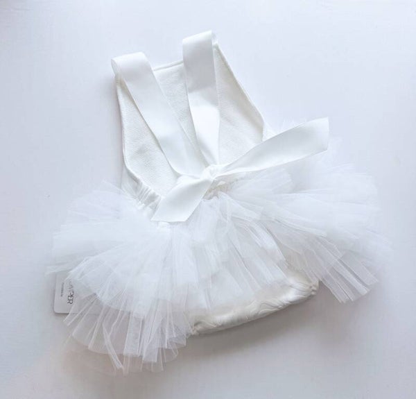 This beautiful white rose romper is high quality and can be worn for a Christening or any special occasion.